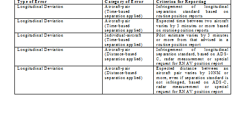 Large Lateral Deviation (LLD): LLD is classified as any deviation of 15 NM or more to the left or right of the current flight-plan track. Large Longitudinal error (LLE) |