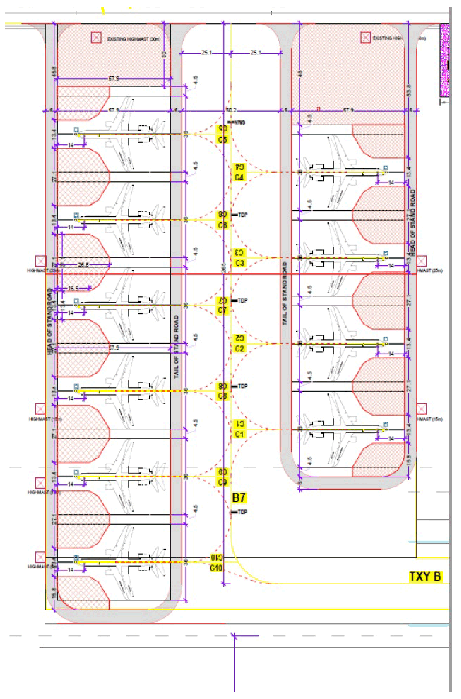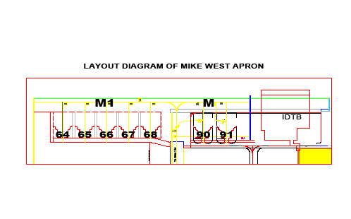 2A. PUSHBACK / PULL FORWARD PROCEDURE FOR STANDS: i. Aircraft on Stand NR. 03-12 shall pushback facing East. Aircraft on Stand NR. 03, 04 and 05 shall pull forward till limit line marked abeam Stand NR. 06 due safety reasons i.e. to avoid JET BLAST effect on perimeter wall. ii. Aircraft on Stand NR. 90 and 91 shall pushback facing West. Aircraft on Stand NR. 91 shall pull forward till limit line marked abeam Stand NR. 90 due safety reasons. iii. Stand NR 03 and 91 AVBL for Code C ACFT. PUSHBACK limit lines marked for Stand NR. 03 and 91. PUSHBACK LIMIT LINES are marked with WHITE LINE. iv. Aircraft on stand 3 shall push pack straight abeam stand till pushback limit line marked in white and then pull forward abeam stand 06 for engine start-up. v. Additional marking available for POWER IN/ POWER OUT. On Stand NR. 90 for Aircraft up to code B, on Stand NR. 91 for Aircraft up to wing span of 20M. vi. ACFT on Stand Number NP7, NP8, NP9, NP10 and NP11 are power-in and power out. vii. PUSHBACK limit lines marked for Stand Number 64. PUSHBACK LIMIT LINES are marked with WHITE LINE viii. ACFT on Stand Number 40-49 shall push back on Taxilane E1. However, ACFT Pushing back from stand 50 & 51 facing west shall deep push back and join E1 for startup. ix. PUSHBACK limit lines marked for Stand NR. C-4 and C-5. PUSHBACK LIMIT LINES are marked with WHITE LINE. x. Additional marking available for Power-in/Power-out on Stand C-1 for ACFT upto code B with max wing span of 20M. Tug disconnect points (TDP) are marked on TWY B7 at Cargo Apron: |