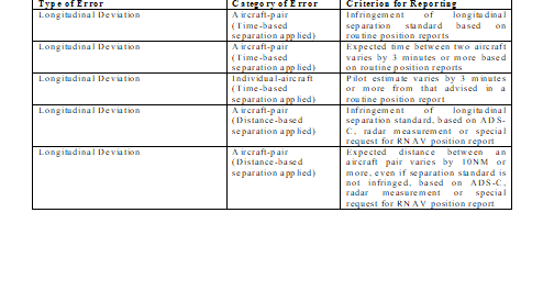 Large Lateral Deviation (LLD): LLD is classified as any deviation of 15 NM or more to the left or right of the current flight-plan track. Large Longitudinal error (LLE) |